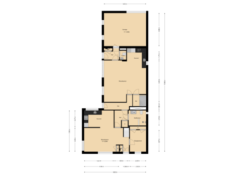 - 52 m² (13,00 meter diep en 4,00 meter breed)