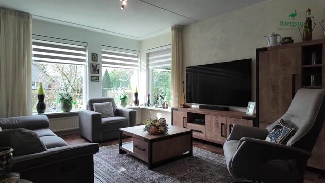 Wat hier direct opvalt is de ruimte en het licht. Aan de voorzijde bevindt zich de gezellige zithoek. Grote raampartijen zorgen voor een prettige lichtinval en de klassieke open haard vormt hier het warme middelpunt. U ziet het al voor zich: een knisperend haardvuur op een winteravond, terwijl buiten de schemer invalt.