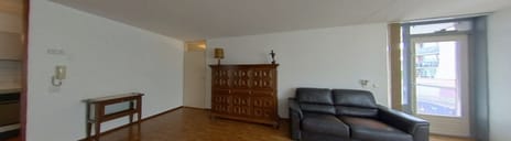 De ruime woonkamer (7.34*4.33m) heeft grote raampartijen aan een zijde en geeft toegang tot het balkon (4.30* 2.05m) aan de achterzijde, de vloer is voorzien van een PVC vloer. De half open keuken (3.53*1.87m) ligt in het verlengde van de woonkamer heeft een wandopstelling met een inductie kookplaat, wasemkap, oven, koelkast en vriezer.