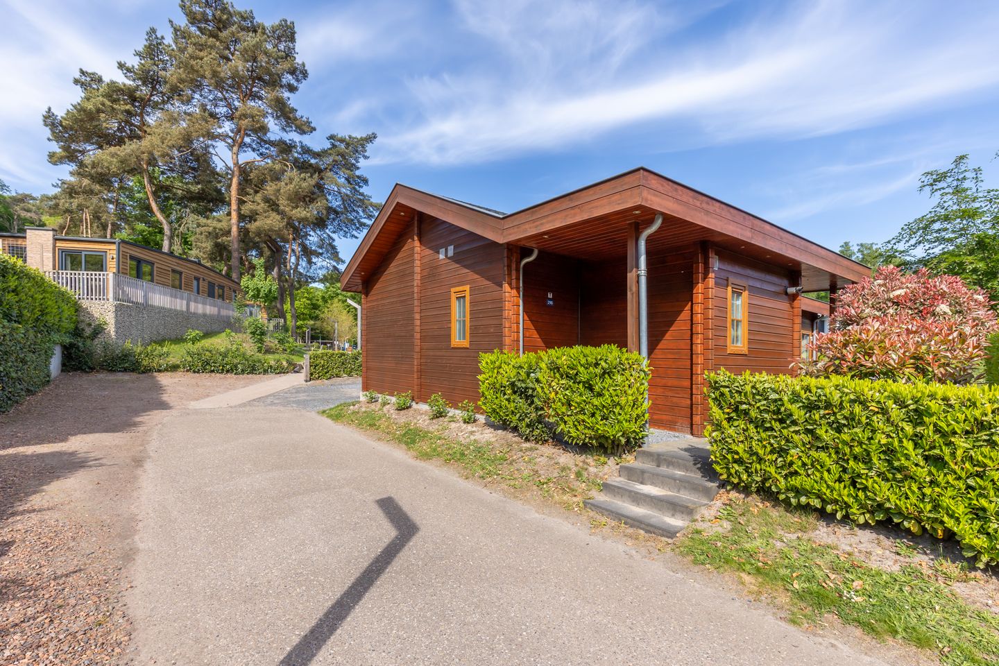 Op het resort Europarcs Brunssumerheide kunnen wij u aanbieden dit fraaie, aan het water gelegen, vrijstaande houten chalet op eigen grond met drie slaapkamers.