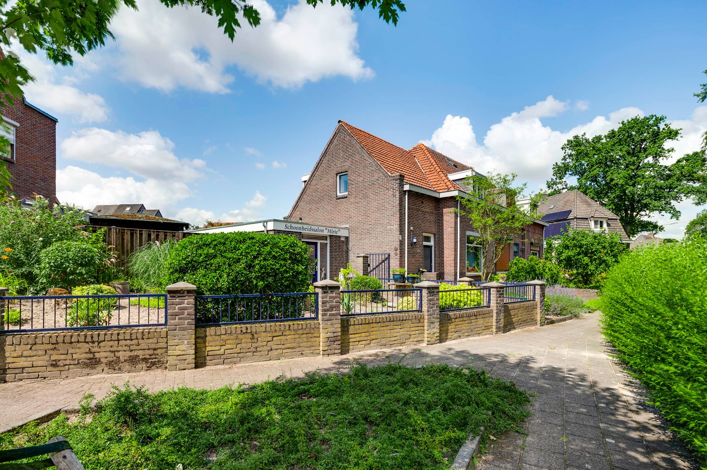 Het unieke aan deze woning is de direct aangrenzende salon-/praktijkruimte met een eigen entree, wachtkamer en gastentoilet. Deze lichte ruimte, voorzien van een plavuizen vloer met vloerverwarming, is perfect voor het ontvangen van klanten in een comfortabele en professionele setting.