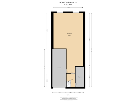 Via de hal te bereiken souterrain/beneden verdieping die onder de gehele begane grond loopt. Deze verdieping bestaat uit een royale multifunctionele ruimte van maar liefst 67 m² die ideaal is om te gebruiken als sportruimte/werkruimte/hobbyruimte/wellness ruimte, kantoor aan huis etc. Deze kamer heeft een stahoogte van 2,25 m en twee bovenlichten voor natuurlijke lichtinval. Theoretisch zou er nog meer lichtinval gecreëerd kunnen worden, waardoor deze ruimte ook als woon/slaapvertrek gebruikt kan worden, ideaal als men de woning voor dubbele bewoning wilt gebruiken. De vloer is netjes afgewerkt met tegelvloer in houtmotief, die over de gehele verdiepingsvloer ligt. Tevens is er nog een handige opslagruimte/berging (8 m²) en inpandige garage (25 m²). De garage is voorzien van een elektrische sectionaal poort.