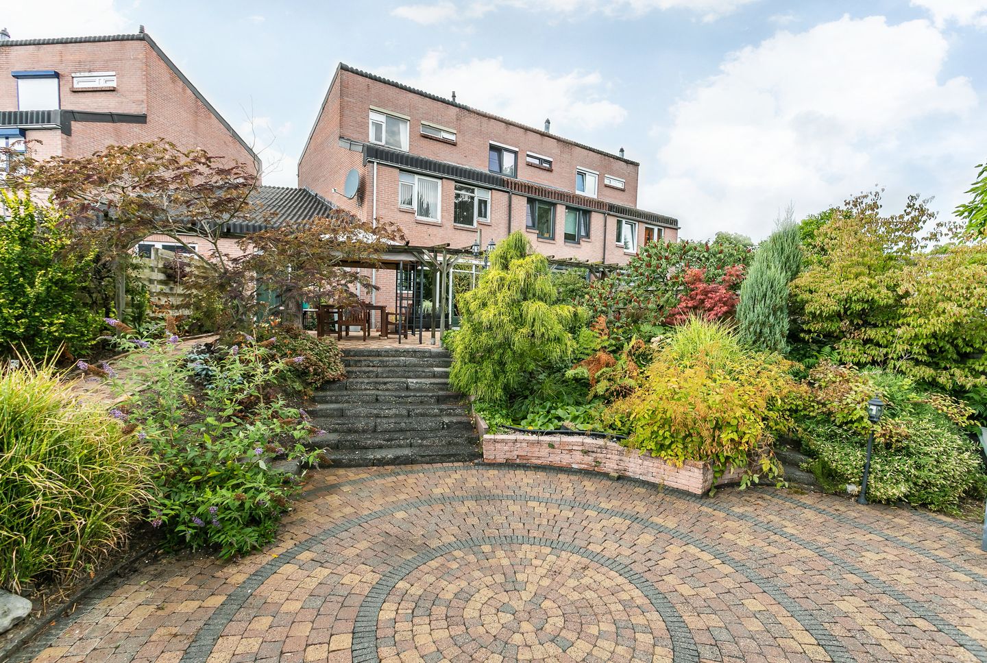 De achtertuin is verzorgd aangelegd, bereikbaar via de woonkamer en via een achterom (poort naar de straatzijde). Daarnaast is er een ruime stenen berging van ca. 15 m² op tuinniveau – ideaal voor fietsen, gereedschap of als hobbyruimte.