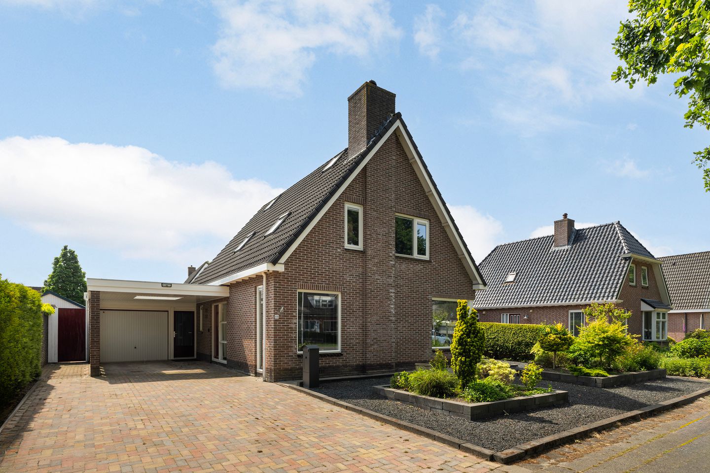 - Aangebouwde stenen garage, carport en garage met carport