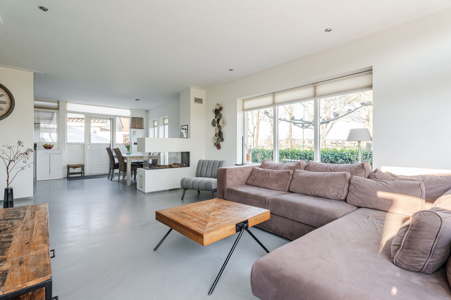 * Ruime woonkamer met moderne gashaard