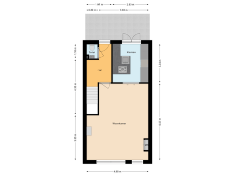- 70 m² (14,00 meter diep en 5,00 meter breed)