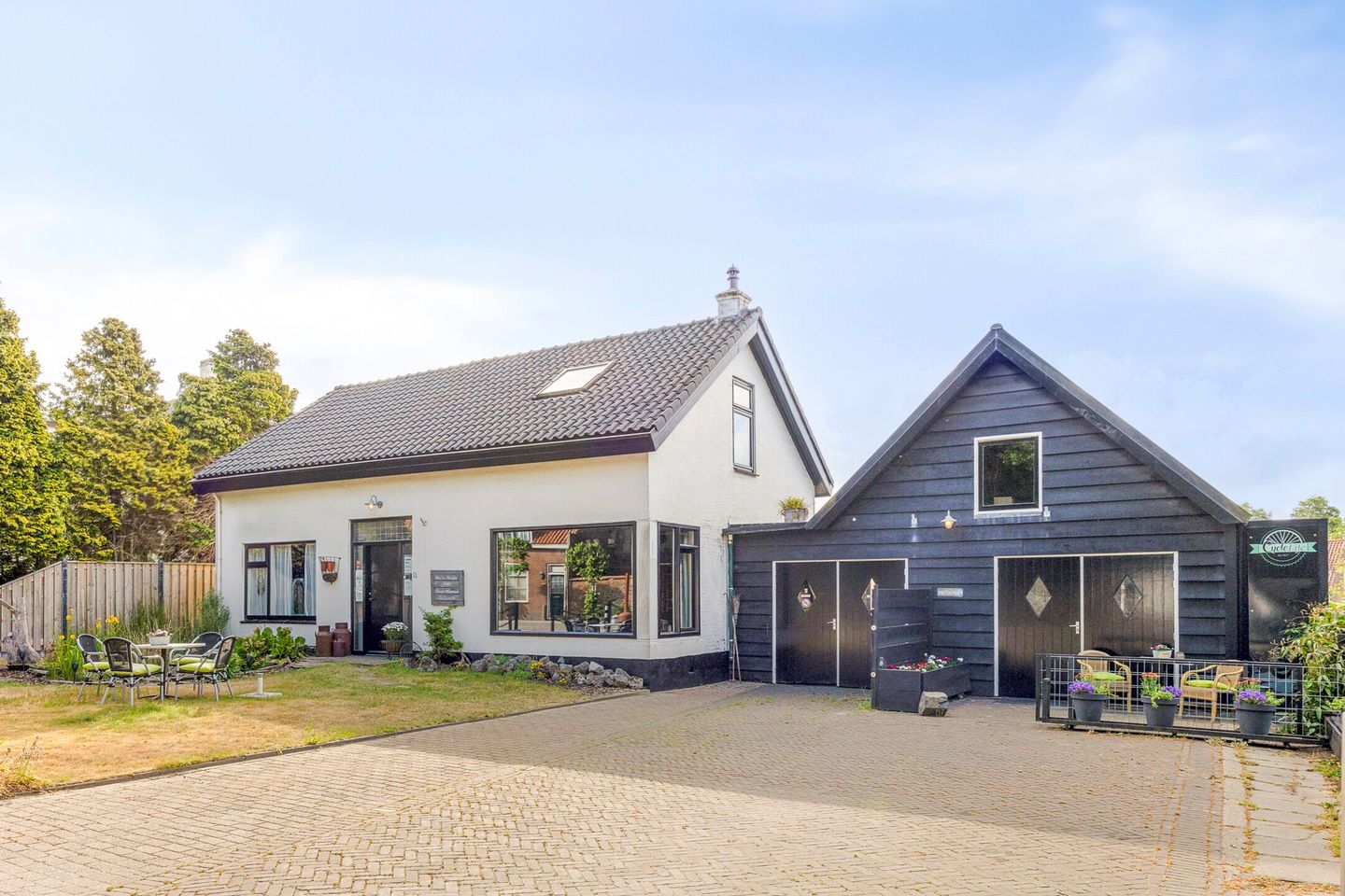 De aangebouwde schuur beschikt over een praktische vliering en grenst aan het comfortabele gastenverblijf. De omliggende tuin is bijzonder sfeervol, met de achtertuin gunstig gelegen op het zuiden. Hier vind je meerdere terrassen en een groenrijke beplanting, waar je volop kunt genieten van rust en ruimte.