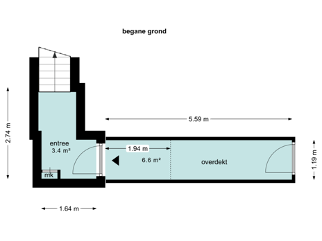 Via een eigen entree en een beschut buiten gangetje bereik je de voordeur van de woning. Binnenkomend in het halletje leidt een vaste trap je naar de eerste verdieping, waar zich de volledige woonverdieping bevindt.