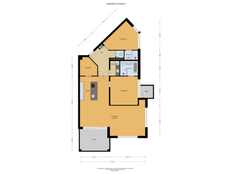 Entree, ruime hal met garderobe en moderne meterkast, aparte (technische) ruimte met de CV ketel en aansluiting voor de wasmachine, modern zwevend toilet met fontein, eerste royale slaapkamer met eigen badkamer welke is voorzien van een inloopdouche en wastafel. Tweede royale slaapkamer met balkon en eigen moderne badkamer. De badkamer is voorzien van een ligbad, inloopdouche, zwevend toilet en dubbelwastafel meubel. Vanuit de hal is middels dubbele deuren de royale woon/eetkamer met luxe openkeuken bereikbaar welke ondermeer is voorzien van een kookeiland met inductiekookplaat, afzuigkap, vaatwasser, Quooker, oven, koelkast en veel kastruimte. Naast de keuken is een bijkeuken aanwezig waar men een 2e koelkast kan plaatsen en veel provisieruimte heeft. De woonkamer heeft een speelse indeling en heeft een goede lichtinval. Bij het eetgedeelte is de schuifpui naar het royale terras welke is gesitueerd op het Zuiden. Het terras is overdekt en is voorzien van elektra en een buitenkraantje.