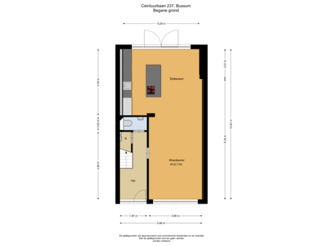 - 58 m² (10,00 meter diep en 5,80 meter breed)