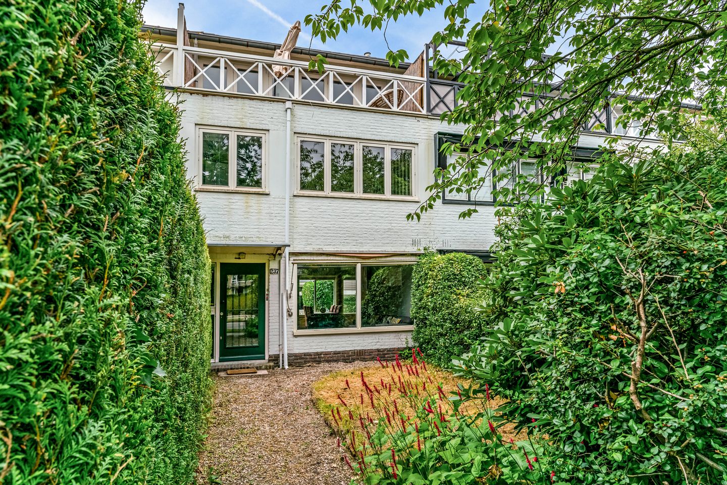 Deze vooroorlogse (bouwjaar 1939) onder architectuur ontworpen uitgebouwde tussenwoning met dakterras en zonnige tuin ligt aan de rand van de populaire woonwijk Godelindekwartier en is onderdeel van het bekende blok witte woningen die door de architecten Zandstra, Giesen en Sijmons ontworpen zijn. Dit architectenbureau is onder andere bekend geworden door de atelierwoningen aan de Zomerdijkstraat in Amsterdam.
