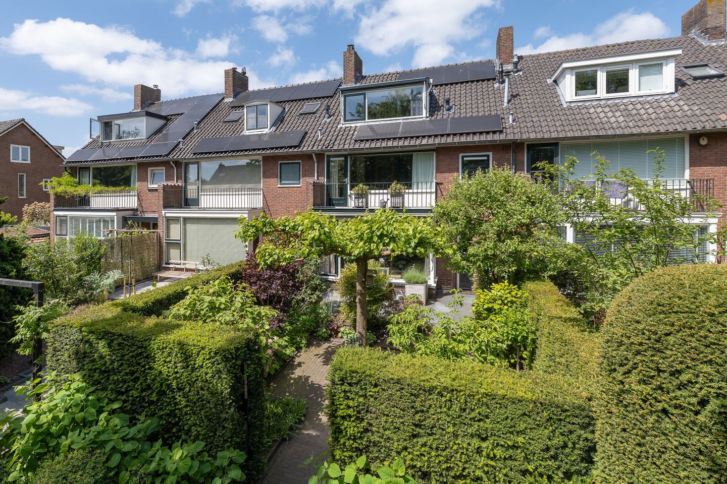 De achtertuin is gesitueerd op het noordwesten, vanwege de diepte is er altijd wel een plekje in de zon of juist in de schaduw te vinden. De bijzonder fraai aangelegde tuin heeft twee nivo’s. Vanuit de woonkamer, middels de openslaande deuren, is er toegang tot een bestraat terras, via een trappetje is het tweede deel van de tuin bereikbaar waar naast het ruime chalet (2013) een tweede terras is aangelegd. De tuin biedt veel privacy en is voorzien van een beregeningsinstallatie en rondom een deels nieuwe schutting.