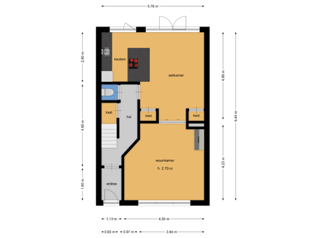- 92 m² (15,00 meter diep en 6,10 meter breed)