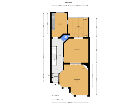 - 59 m² (11,00 meter diep en 5,40 meter breed)