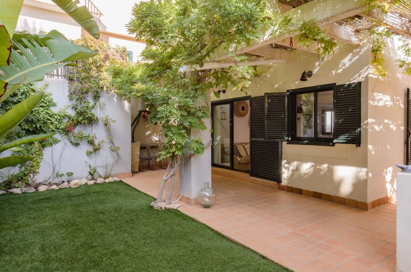 The house is within a community called Mirador de Cala Tarida and has 3 cosy double bedrooms with ample wardrobes, 2 bathrooms (one with bathtub and one with shower), and a bright living-dining room with open plan fully equipped kitchen. Laundry room, a large terrace with outdoor dining area, a private garden and a roof terrace perfect for relaxing.