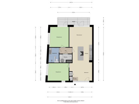 Slaapkamer 1 is bereikbaar vanuit het eetgedeelte en is ideaal als hoofdslaapkamer. Slaapkamer 2 is toegankelijk vanuit de hal, grenst aan de keuken en beschikt over een deur naar het terras – perfect als logeer-, werk- of hobbykamer.