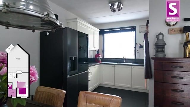 Niveau 3: De voordeur van de woning bevindt zich aan de wandelpromenade op de eerste etage. Je komt de woning binnen in de hal met meterkast, garderobe en toiletruimte. Vanuit deze hal kom je in de grote woonkeuken van 16m2, die genoeg ruimte biedt voor een eettafel. De keuken is uitgevoerd in een landelijke U-opstelling (2018) met diverse apparatuur, te weten: een ruime koelkast (2024, Amerikaans model), een 6-pits gasfornuis met 2 ovens, een afzuigschouw, een magnetron en een vaatwasser. Ook heeft de keuken veel bergruimte en een hardstenen aanrechtblad.