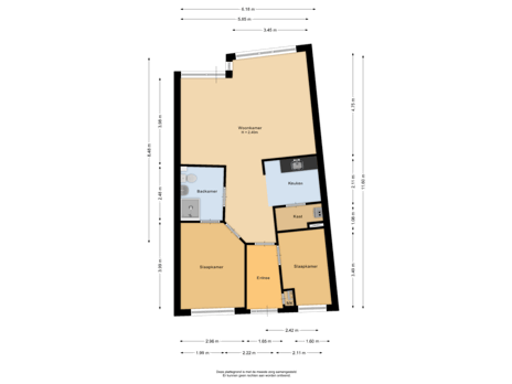 - 50 m² (9,00 meter diep en 6,00 meter breed)
