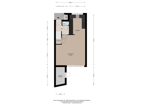 - 72 m² (13,50 meter diep en 5,30 meter breed)