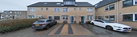 Voortuin, grenzend aan een gezellig en kindvriendelijk (speel)pleintje, voorzien van sierbestrating, zonwering voor keukenraam (markies), buitenkraan en parkeergelegenheid.