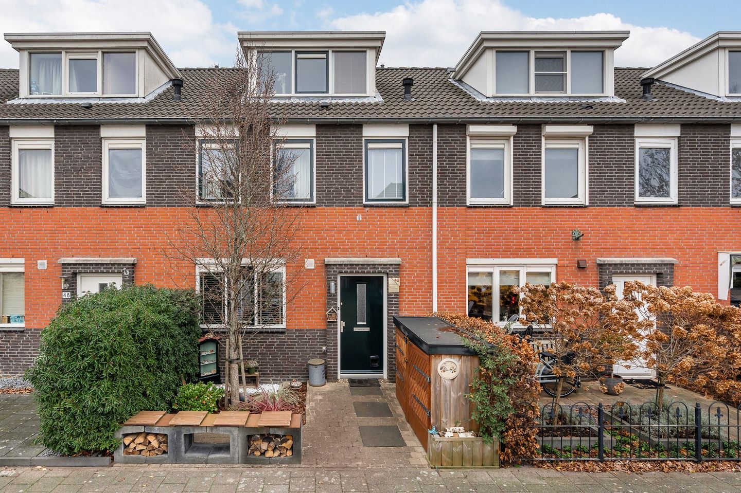 Via de verzorgde voortuin van ca. 16 m2, waar twee jaar geleden een extra fietsenschuur met ruimte voor drie fietsen is gerealiseerd, is de voordeur te bereiken.