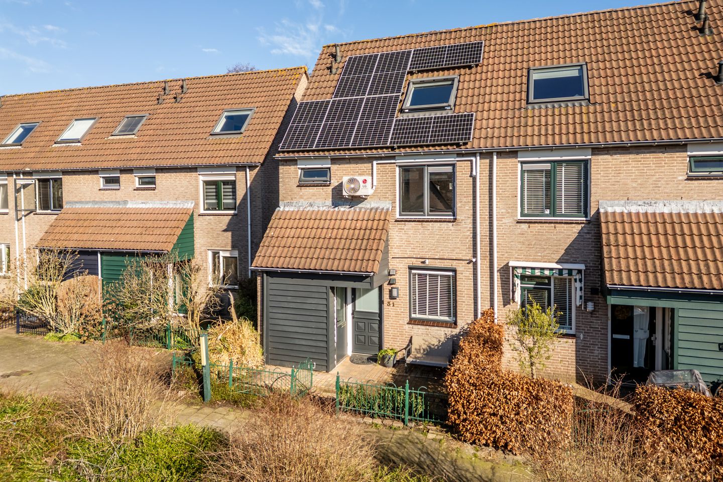 Bij binnenkomst valt direct de ruimte op van de woonkamer, gelegen aan de achterzijde van de woning met deur naar de vrij gelegen achtertuin. Aan de voorzijde van de woning bevindt zich de moderne keuken, voorzien van diverse inbouwapparatuur en met uitzicht op de voortuin. De aanpandige berging is voorzien van elektra en is vanuit de voortuin bereikbaar. In de zijtuin is een tweede berging geplaatst. Op de eerste verdieping bevinden zich drie slaapkamers en de moderne badkamer, voorzien van een ruime inloopdouche, een wastafel en een hangend closet. Het toilet op de begane grond is De twee slaapkamers aan de achterzijde zijn lekker groot dankzij de dakkapel over de volledige breedte van de woning. Op de zolderverdieping kunnen eventueel twee slaapkamers gecreëerd worden. Verwarming en warm water geschiedt door middel van stadsverwarming. De strak aangelegde achtertuin beschikt over een overkapping met vlonder aan het water en is tevens bereikbaar via het zijpad met een berging.