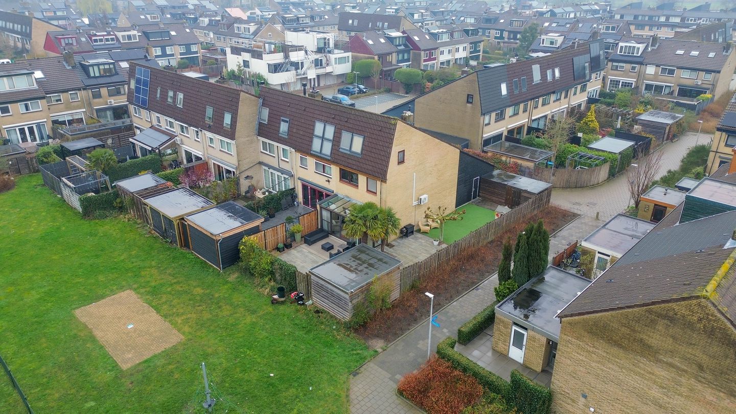 De achtertuin ligt gunstig op het zuidwesten, waardoor je hier vrijwel de hele dag van de zon kunt genieten. De tuin is ruim genoeg voor meerdere zitplekken, zodat je altijd een plek in de zon of juist in de schaduw kunt vinden. De hardhptuen overkapping mét heater is de ideale plek om het gehele jaar door te genieten van de tuin. Daarnaast zorgt de zijtuin voor extra ruimte en privacy. Hierdoor voelt het perceel nog groter aan en ontstaat een vrij gevoel rondom het huis. In een woonwijk waar ruimte soms schaars is, is dit een bijzonder fijne toevoeging.
