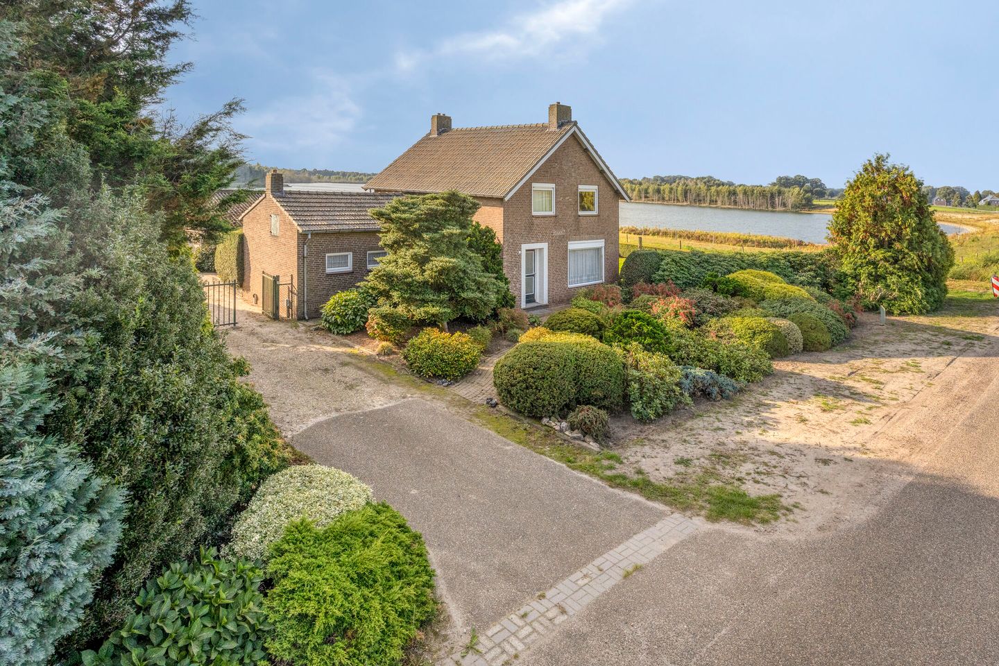 Het gehele perceel is omheind en voorzien van stalen poorten. De oprit met elektrische poort leidt naar de bijgebouwen aan de achterzijde.