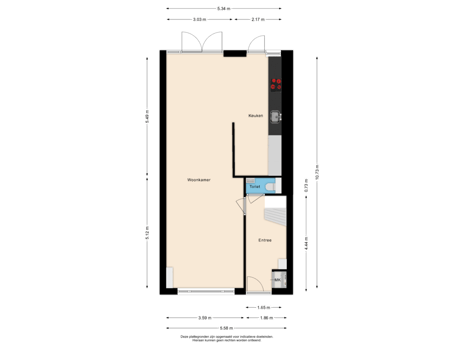 - 23 m² (4,00 meter diep en 5,80 meter breed)