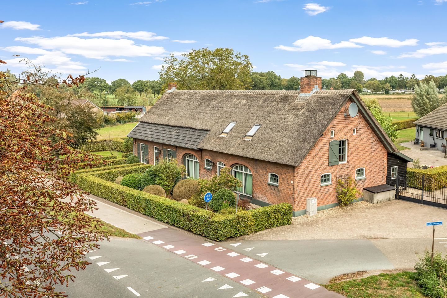 De grote schuur is een indrukwekkende ruimte met karakter, waar het authentieke gebintwerk direct in het oog springt. Dankzij de royale afmetingen is er volop plaats voor het stallen van meerdere voertuigen, het opslaan van materialen of het uitoefenen van hobby’s. De ruimte is voorzien van een betonnen vloer en aan de buitenzijde afgewerkt met gepotdekseld hout, wat perfect past bij de landelijke uitstraling. Het rieten dak geeft het geheel extra charme. Aan de achterzijde bevinden zich hoge openslaande deuren, terwijl aan de voorzijde een carport/garagegedeelte is gesitueerd, ideaal voor het parkeren of beschut stallen van voertuigen. Verder is deze schuur voorzien van elektra.