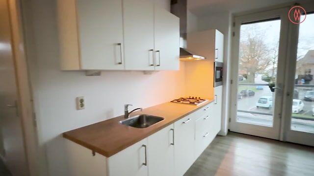 Bij binnenkomst in het appartement kom je in een hal met de meterkast en ruimte voor de garderobe. Vanuit hier is er toegang naar de lichte en ruime woonkamer, die dankzij de grote ramen en de deur naar het balkon een heerlijk zonnige uitstraling heeft. Het balkon biedt een fijne plek om te ontspannen. De open keuken is modern en compleet ingericht met diverse inbouwapparatuur.