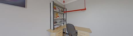 2e verdieping: Deze verdieping is bereikbaar middels een vaste trap. Overloop met bergruimte, de opstelling van de cv-installatie en de aansluitingen voor de wasapparatuur. Tevens is hier een 4e slaapkamer met een groot dakraam en bergruimte achter de knieschotten.