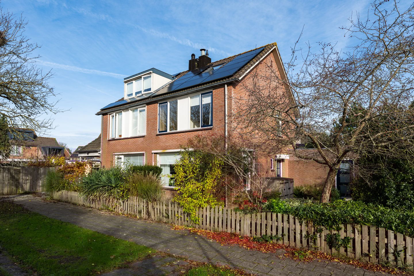 De woning beschikt over een lichte, ruime woonkamer met pvc vloer, een open keuken met nette inbouwapparatuur en drie slaapkamers op de eerste verdieping. De badkamer is voorzien van een ligbad. Op de tweede verdieping bevindt zich een vierde slaapkamer met grote dakkapel, waardoor er extra licht en leefruimte ontstaat. De diepe achtertuin op het noordoosten biedt volop privacy.