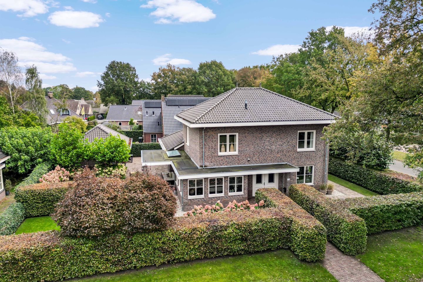 De fraai aangelegde tuin rondom de woning biedt volop privacy en is perfect onderhouden, met verschillende terrassen waar u in alle rust kunt genieten. Of u nu wilt ontspannen met een boek in de zon, gezellig wilt tafelen met vrienden of een ruimte zoekt voor de kinderen om te spelen, deze tuin biedt alles.