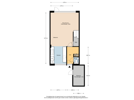 Je komt binnen in de hal met garderobe, toilet, meterkast. Vanuit hier loop je door naar de woonkamer met trapopgang met onder de trap extra bergruimte.