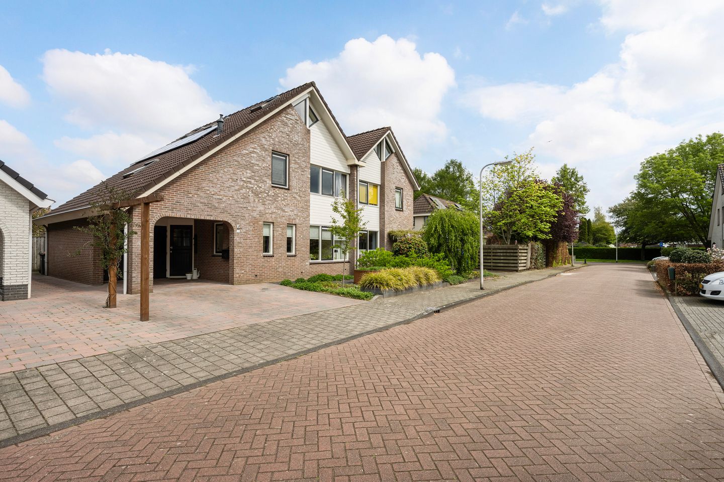 De woning beschikt over een ruime oprit met parkeergelegenheid voor meerdere auto's, en een achterom via de zijkant van de woning. De achtertuin is opvallend diep en biedt, mede dankzij de karakteristiek veranda, volop privacy en mogelijkheden om te genieten.