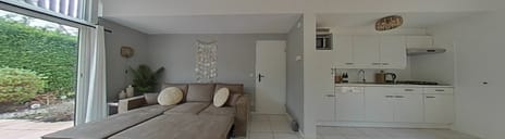 Via de hal kom je in de woonkamer met een zithoek met 1 zitbank welke tot chaisse lounge kan worden gemaakt. 2 aparte fauteuils, salontafel en tv meubel. Alle meubels zijn recent vernieuwd.