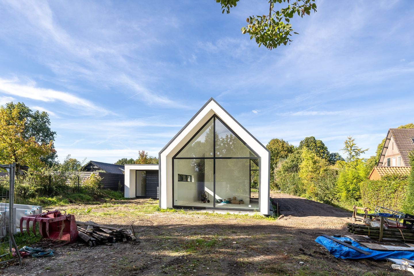 Deze recent gebouwde woning is ontworpen door architect Dirk ten Have en combineert modern wooncomfort met de charme van een landelijke omgeving. De woning is volledig duurzaam en energiezuinig gebouwd: gasloos, voorzien van een warmtepomp en zonnepanelen. Zo woont u niet alleen stijlvol, maar ook toekomstbestendig.