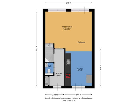 - 60 m² (12,00 meter diep en 5,00 meter breed)
