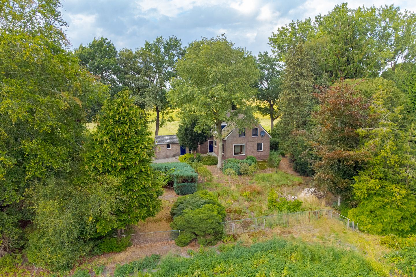 De ligging is werkelijk subliem; verscholen in het groen en toch rondom vrij en ruim uitzicht. De buren bevinden zich op ruime afstand. Op het perceel bevinden zich naast de woning een vrijstaande stenen berging van 15 m² en een eenvoudige betonnen garage/schuur van 76 m² met golfplaten dak (asbesthoudend). De tuin loopt rondom de woning, waarbij de achtertuin gunstig op het zuidwesten is gesitueerd. Genieten van het Drentse buitenleven kan hier in optima forma!