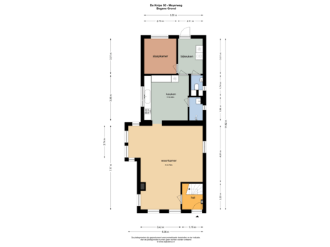 Achter de keuken bevindt zich de bijkeuken. Hier zijn een toilet, witgoedaansluiting en de achterdeur gesitueerd. Vanuit de bijkeuken is tevens een slaapkamer op de begane grond bereikbaar, wat de woning geschikt maakt voor gelijkvloers wonen of gebruik als werk- of logeerkamer.
