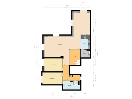 - 91 m² (11,00 meter diep en 8,25 meter breed)