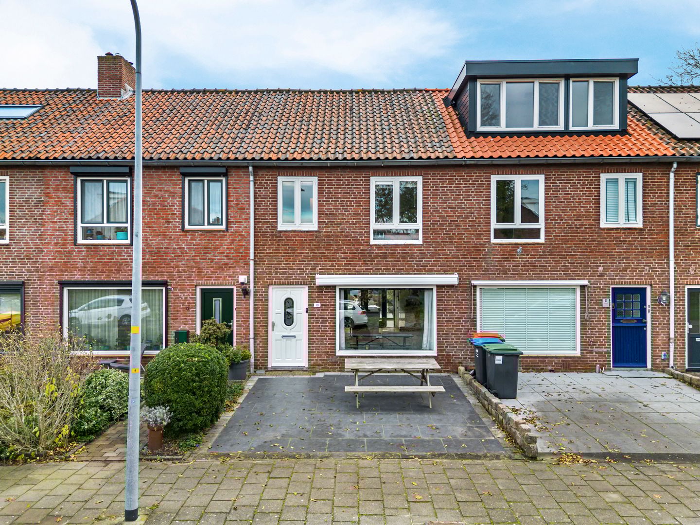 De woning heeft zowel een zonnige voortuin als een diepe achtertuin, met achterin een berging die ideaal is voor fietsen, tuinspullen of hobby’s.