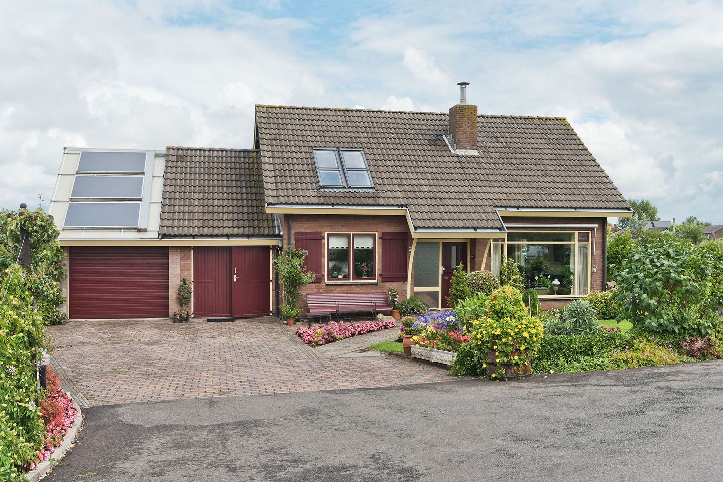 Buitenzonwering, dakraam, glasvezelkabel, schuifpui, TV kabel, en zonnecollectoren