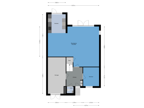 - 79 m² (7,95 meter diep en 9,95 meter breed)