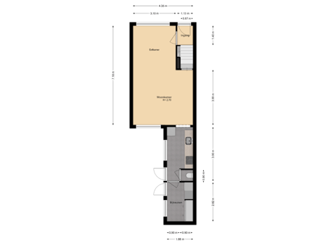 - 16 m² (6,85 meter diep en 2,30 meter breed)