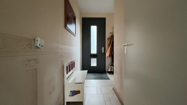 Op de tweede etage kom je via de overloop in de wasruimte en de derde, wederom royale slaapkamer. Ook deze kamer heeft drie grote ramen met Franse balkons, waarvan één raam te openen is. In de wasruimte vind je, naast de wasmachine- en drogeraansluitingen, extra bergruimte. Hier zijn tevens de vernieuwde cv-combiketel (Nefit, 2025), de zonneboiler en de mv-unit geplaatst.