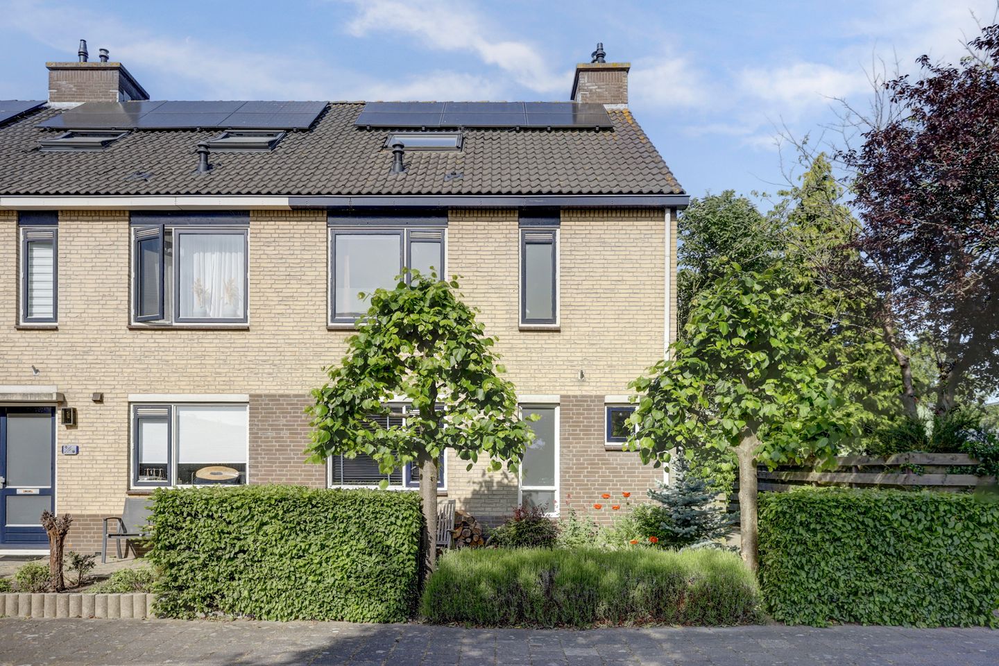 Een prachtig groen welkom in deze voortuin! Met daarnaast een keurig nette bestrating is het hier prettig binnenkomen. De hal is voorzien van de meterkast en het toilet (zwevend, fonteintje) en geeft toegang tot de trap naar de 1e etage en de woonkamer. Deze woonkamer is zoals beschreven heerlijk ruim en licht. Daarnaast zorgt de eikenhouten vloer en de houtkachel (met speksteen) voor veel sfeer en warmte. In de trapkast is een zee aan bergruimte. De serre is bij deze woning echt een verlengstuk van de woonkamer en vanuit hier is er prachtig zicht op de groene en verzorgde tuin.