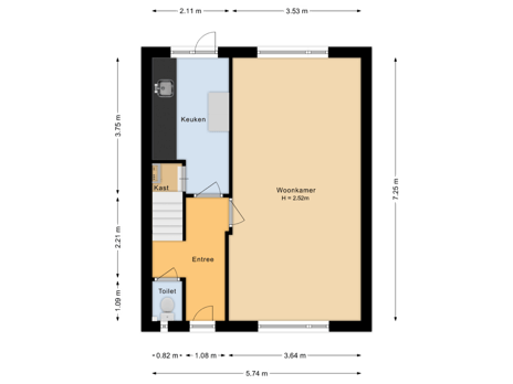 De woonkamer is diep en licht, voorzien van een nette laminaatvloer en twee grote raampartijen die zorgen voor een prettige natuurlijke lichtinval. De keuken en hal zijn afgewerkt met een fraaie granieten vloer. De keuken is uitgevoerd in een rechte opstelling met een extra kastenwand waarin de koel- en vrieskast zijn geïntegreerd. Daarnaast beschikt de keuken over een afzuigkap en mechanische ventilatie. Vanuit de keuken heb je toegang tot de trapkast, waarin ook de meterkast is verwerkt.