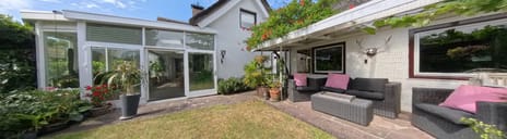 Een absolute eyecatcher is de aangebouwde serre/tuinkamer: een lichte ruimte met drie dakkoepels, vele ramen en openslaande deuren naar de tuin. Hier zijn binnen en buiten prachtig verbonden. De aanwezige houtkachel maakt dit bovendien een plek waar je het hele jaar door in knusse sfeer kunt genieten – van zonnige ochtenden tot winterse avonden.